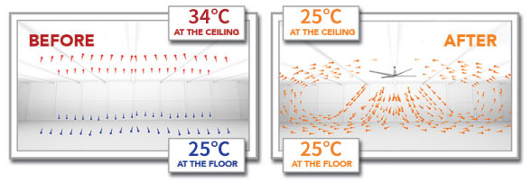 多數人認為,風扇都是在夏天為人們帶來清涼的。節能工業風扇結合空調系統,能夠在無需下調空調設定溫度的前提下降低建筑物內的感知氣溫。
