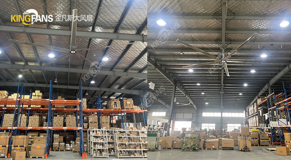 工業大風扇可將空調冷氣吹至各角落,實現強勁的空氣循環,從而有效調節室內溫度。此外,工業大風扇能耗低,1小時0.8度電,風量可達14130m³左右,覆蓋面積廣達1500㎡,為解決物流倉庫降溫問題提供了有效手段。