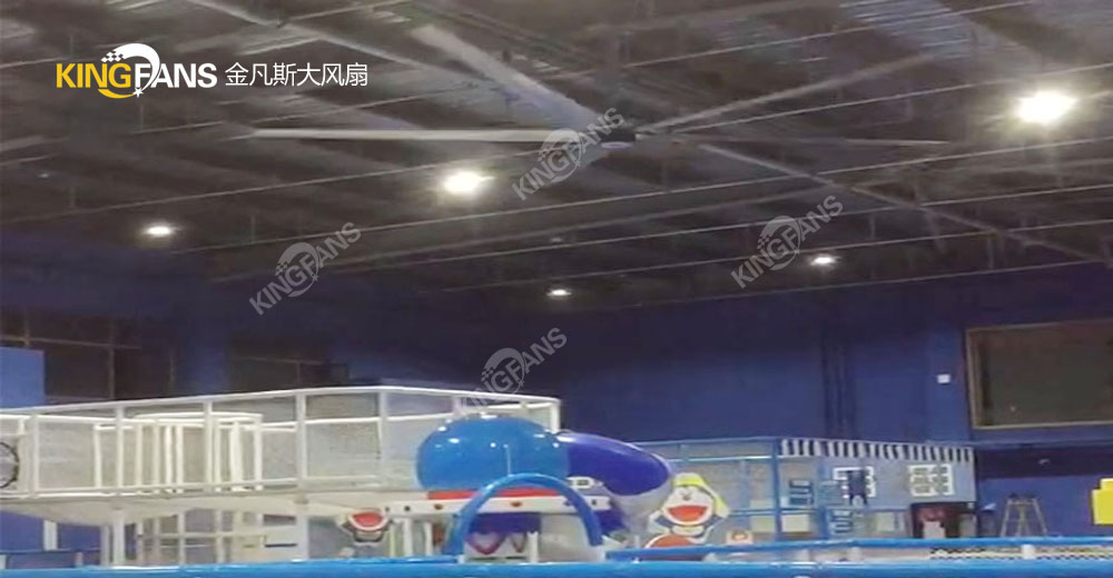 超大吊扇非常合適使用在游樂場,持續輕柔的自然微風加快了人體表面汗液蒸發,從而達到了降溫的效果,改善了舒適性。